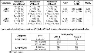 RESULTADOS E DISCUSSÃO: Os compostos obtidos apresentaram as seguintes características: LPSF NNS32 (P.F. 130-132ºC e Rdt 57%) e LPSF NNS53 (P.F. 220ºCdec.e Rdt 67%). Os dados espectroscópicos de RMN1H encontram-se abaixo:
