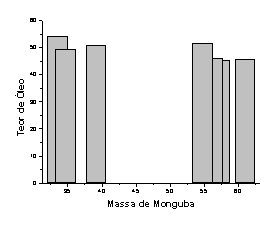RESULTADOS E DISCUSSÃO: RESULTADOS E DISCUSSÃO: A semente de monguba apresenta uma média acima de 50% de água em sua composição. Os teores de óleo de monguba obtidos confirmam os valores encontrados na literatura (45-50%). Então foi possível dizer, que a extração do óleo ocorreu com eficiência de quase 100%. A variação da secagem do óleo resulta da quantidade de solvente que ele absorveu durante a extração. A transesterificação é influenciada pelas propriedades do óleo utilizado. Na Tabela 1 são apresentados os resultados dos parâmetros analisados do óleo de monguba. O percentual de ácidos graxos foi de 91,5 %, conforme literatura se assemelha a diversos óleos que é aproximadamente 100%. O índice de iodo um valor de 86,21g I2/100g, que reflete a composição em ácidos graxos, indica que o óleo de monguba é adequado para a obtenção de biodiesel com maior estabilidade à oxidação, se comparado, por exemplo, a um biodiesel de soja, cujo óleo exibe índice de iodo na faixa de 120-141g I2/100g. A acidez resultou num valor de 7,45 mg.KOH/g, esse valor é um tanto elevado e é sabido que o emprego de óleos vegetais com acidez superior a 3% dificulta o processo reacional, no que tange a rendimentos e purificação do biodiesel formado, devido à ocorrência de reações de saponificação. Obteve-se um resultado dentro das normas utilizadas, houve um rendimento de 72% de biodiesel e o restante percentual ficou entre a glicerina, as gomas e impurezas do óleo. Fez-se o teste do biodiesel combustível com lamparina de vidro e verificou-se que as chamas não desprendiam fuligem.