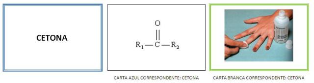 A utilização de atividades que ajudam a esclarecer e facilitar muitos assuntos de diversas disciplinas tem sido uma prática constante de muitos educadores. A interação dos alunos durante as atividades lúdicas podem ser abordadas desde a confecção das cartas desse jogo (figuras 1 e 2 correspondem a 2 trios de cartas formadoras de trincas), necessitando do estudo do conteúdo previamente na sala de aula. Por isso, esta atividade auxilia no processo de desenvolvimento do aprendizado, uma vez que estimula o raciocínio, o estudo fora do ambiente da sala de aula, a integração com os colegas, além de aumentar a auto-estima e a responsabilidade dos discentes. Dessa maneira, o estudante pode perceber que as funções orgânicas são amplamente utilizadas na fabricação de muitos produtos de uso diário, o que torna sua memorização mais agradável e facilitada.