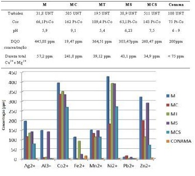 Teste de eficiência da Silica (MS), em comparação a outros métodos, para adsorção de metais (M), de acordo com a CONAMA-450.