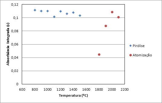 temperatura de atomização de 2100 ºC, com rampa FP (full power); concentração de