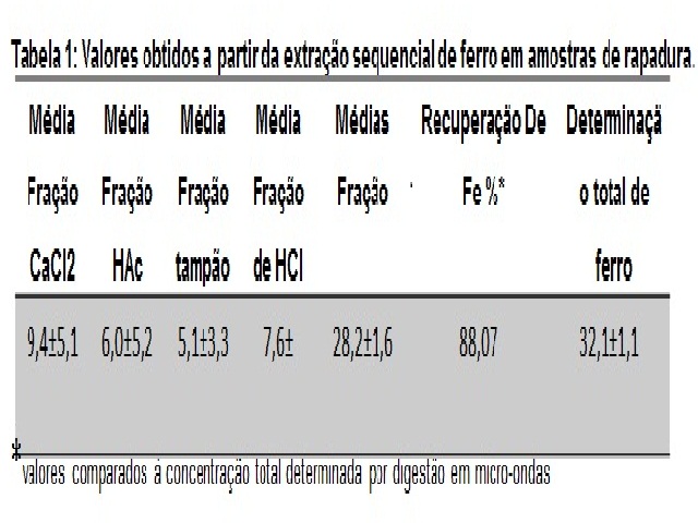 Tabela 1: Valores obtidos a partir da extração sequencial de ferro em