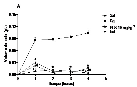 RESULTADOS E DISCUSSÃO: No edema por carragenina (Cg), o grupo tratado com PLS (10mg/kg) reduziu