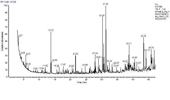 Para cada substância encontrada é apresentado o tempo de retenção. Foram