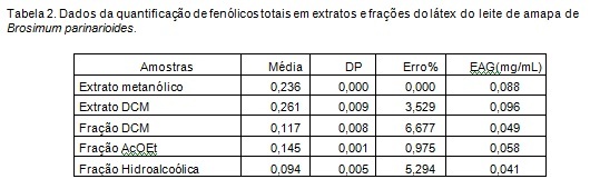 antioxidante nos extratos metanólicos obtidos do látex do leite de Amapá de duas