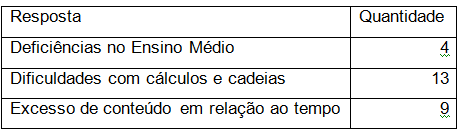 apresentaram deficiências em conhecimentos básicos de química. Indagados sobre