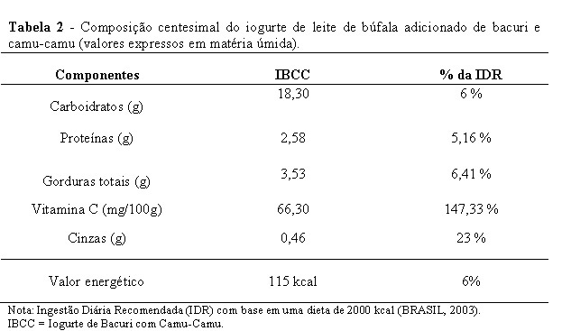 Os resultados da composição centesimal do iogurte de leite de búfala estão