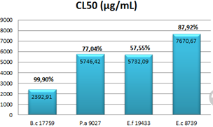 Com o valor daCL50 foi realizado o cálculo de percentagem de