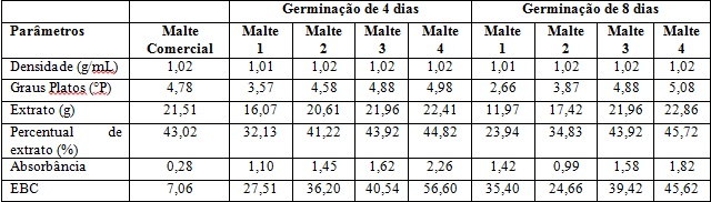 enquanto que os maltes 4 para obtiveram 44,82 e 45,72 % para quatro e oito