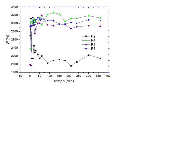 A Figura 2 apresenta o resultados das análises de intumescimento dos filmes