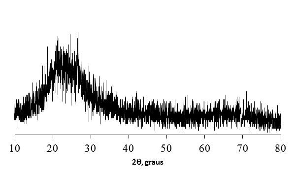 Espectro obtido por meio de DRX que tem características de material amorfo que comprova a transformação do Caulim técnico em metacaulinita.