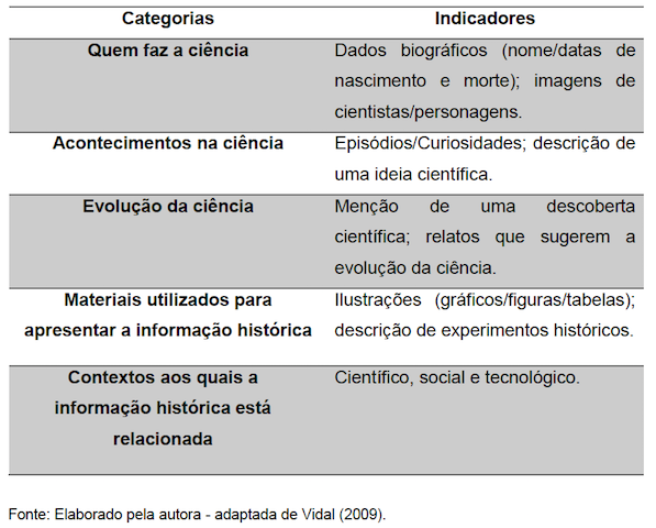 VIDAL, P. H. O. A História da Ciência nos livros didáticos de Química do PNLEM 2007. 104f. Dissertação (Mestrado em Ensino de Ciências) – Programa Interunidades em Ensino de Ciências, Universidade de São Paulo, São Paulo, 2009.
