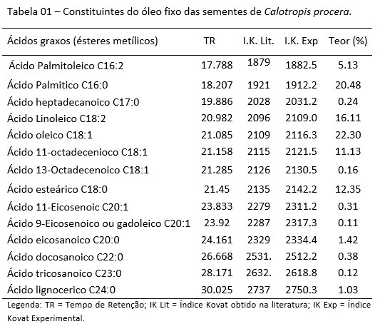 Constituintes do óleo fixo das sementes de Calotropis procera.