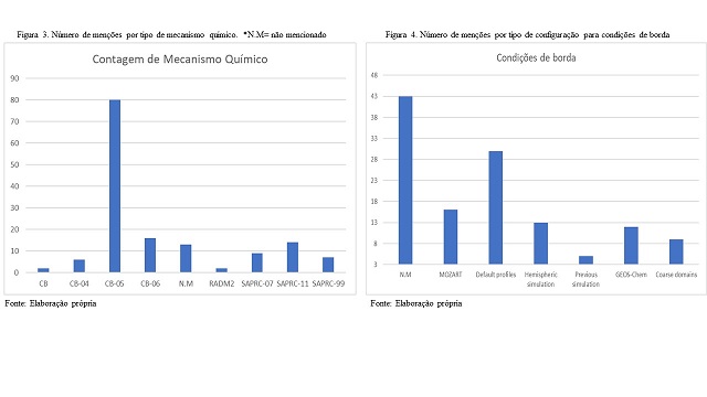A reunião dos artigos mostrou que as configurações mais usadas no CMAQ para