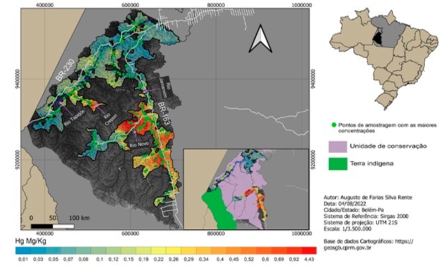 Distribuição espacial do mercúrio na bacia hidrográfica do Tapajós