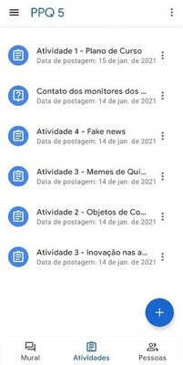 figuras 1 e 2 apresentam ilustrações do Classroom com as principais atividades